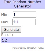 Este sorteio conta com 111 participações, sendo o vencedor escolhido através do random.org. Assim, o vencedor corresponde ao número...
