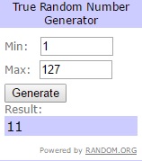 Este sorteio conta com 127 participações, sendo o vencedor escolhido através do random.org. Assim, o vencedor corresponde ao número...